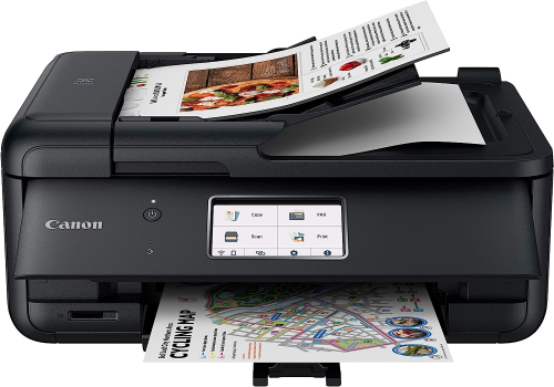 The Canon TR8620a is a top-notch all-in-one printer known for its user-friendliness and high-quality prints. It can produce single-sided color pages in just 18 seconds. Beyond printing, it excels in copying, scanning, and faxing. Features include wireless connectivity, an LCD touchscreen, an automated document feeder (ADF), and double-sided printing capabilities. It’s a versatile choice for both home and office use.